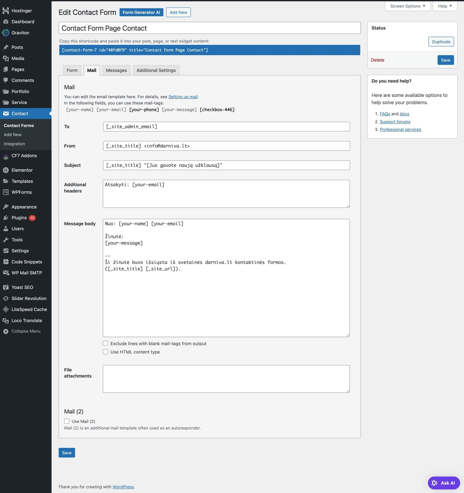 - Ensure your Mail tab settings in Contact Form 7 are correct